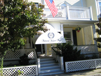 The Admiral Weaver Inn welcomes you to Newport, offering the Bed and Breakfast formula, now the first choice of travelers the world over. A neo-Italianate villa, circa 1863 with six newly remodeled rooms featuring wicker, brass and Shaker styled furnishings and a designer's touch of hand stenciling. With two decks and a covered front porch; there's enough room for those rare moments when you are not off enjoying the nearby sights and sounds of Newport.