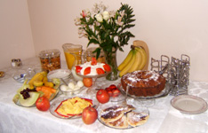 In the morning Guests enjoy a full Gourmet breakfast served in our cozy dining room or on the outside deck. Warm up in the chilly months with a fireside breakfast or snuggle into a private room with your fire.